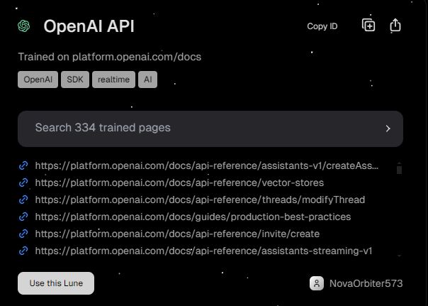 Lune’s API is hot swappable with OpenAI’s, so you can integrate it with Cursor, Continue, and other similar tools. For $20 a month, you get unlimited requests on individual Lunes. You also get to API for Lunes and Tycho models. When you login, you can see a variety of popular Lunes created by the users of this tool. You will be able to see what they are trained on.
