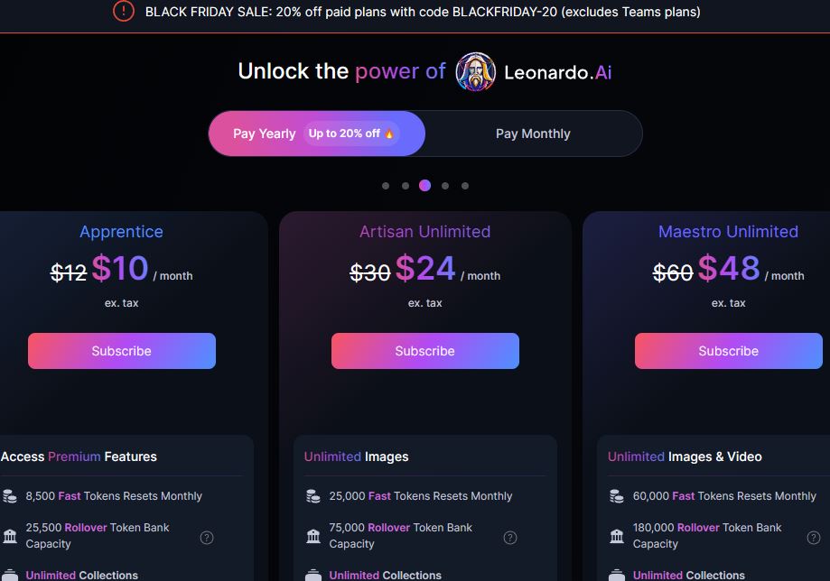 Leonardo is another tool you can use to generate stunning AI videos and photos. It is offering a limited time deal for its plans when you use the coupon: BLACKFRIDAY-20. I love this tool because it lets you bring motion to my photos without the steep learning curve you have on Runway. A year worth of the standard play will now cost under $100.