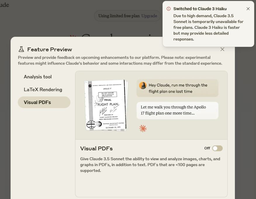 Speaking of Claude, free accounts are currently being switched to Haiku due to high demand.