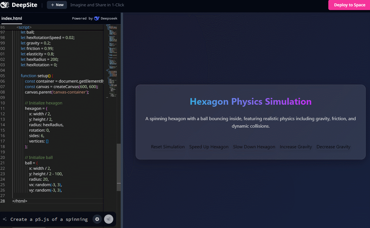 Cursor, Windsurf, and other vibe coding tools let you use Claude and other models to develop apps and games. Thanks to DeepSite, you can put DeepSeek to use for vibe coding. It is a simple interface that lets you create amazing apps with simple prompts. You can watch the process as it happens: