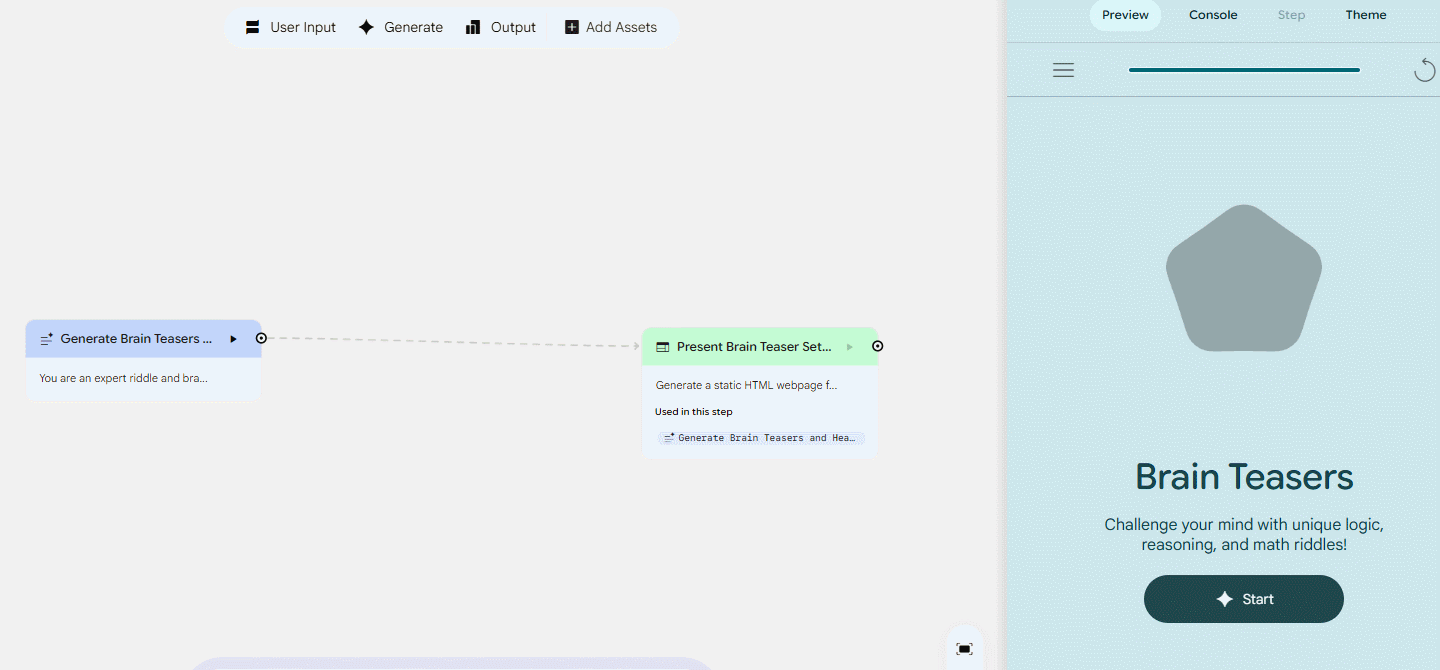 Building apps is getting a lot easier. Google and many other companies already have plenty of capable models for vibe coding. With Opal, you can create mini apps with simple text commands. It has a node like interface for easy customization. You will be able to run your workflow step by step in the visual editor and make changes to a specific step in the console panel.