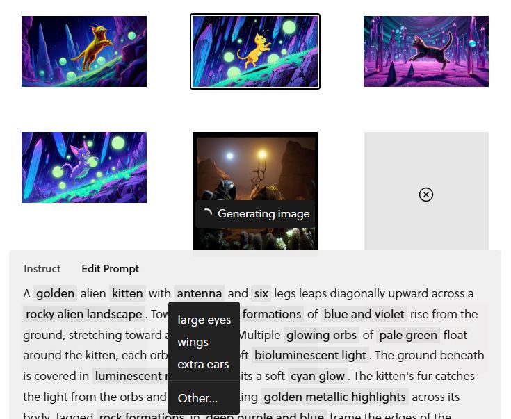 I did a quick comparison with the same prompts on Midjourney and Reve. What’s neat is when you upload a prompt, it is enhanced to get you the best result. You will also be able to click on the bold parts to make changes to your image, which is very convenient.