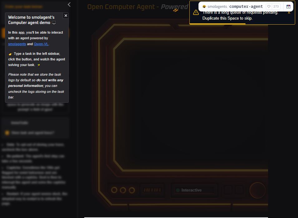 Here is an AI agent that uses computers like a human. Open Computer Agent can be run in your browser with no installation. You can ask it to use Google Maps to find you a place, go to Wikipedia and get information, and do everything in between. This tool is powered by smolagents, Qwen2-VL-72B, and E2B Desktop, which are open source.